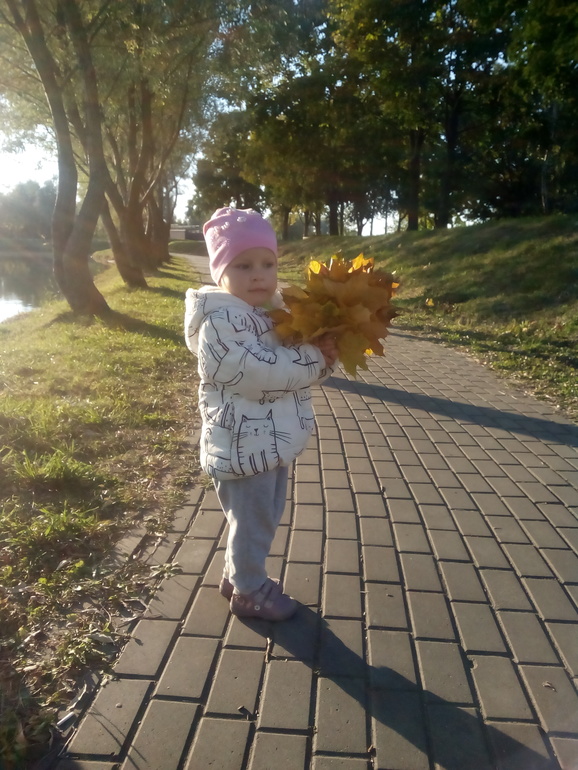 Вечером ходили с малышкой гулять,собирали урожай( листья, каштаны).