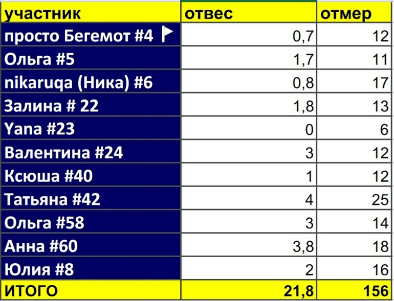 Приятно было идти с вами месяц с лишним, бок о бок к общей цели-стройности! Мне кажется мы отлично скоротали хмурые и холодные осенние деньки, и с пользой-и для тела, и для души!))) СПАСИБО!