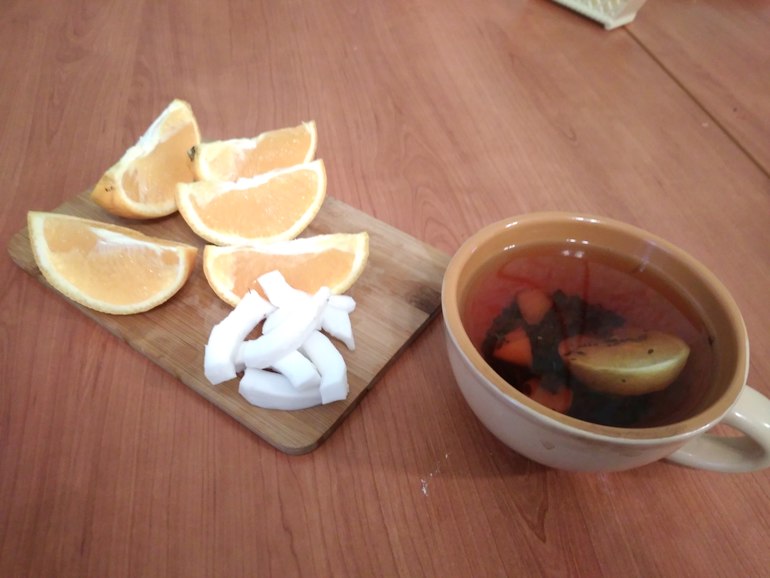 Полдник: апельсин, кокос.