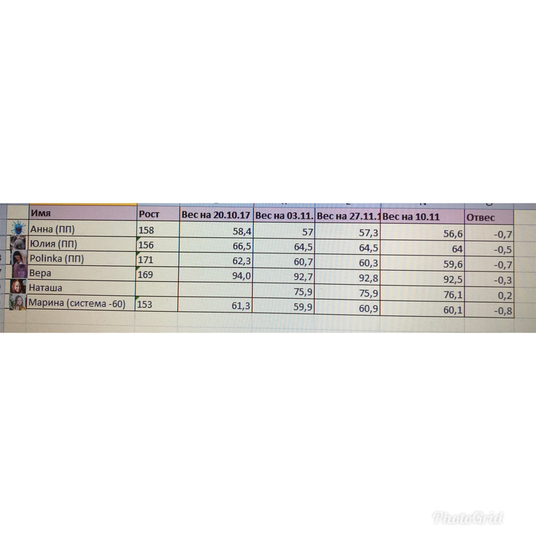 Пинка ща дам! Глянь, какие мы все молодцы по табличке 😜 Подключай спорт, и ужин рекомендую Овощной салат + кефир или творог ( без яиц!!!), либо творог /кефир или ряженка + яблоко. Вот продержись на таких ужинах недельку и сама увидишь вес пойдет на спад и себя лучше чувствовать станешь. И ОБЯЗАТЕЛЬНО обедай, если конечно у тебя завтраки не в 11-12 ))) На обед лучше мяско + овощи, если завтрак в 11-12 то завтракай как обед ! На меня не смотри я в 5 встаю, в 6 завтракаю )))