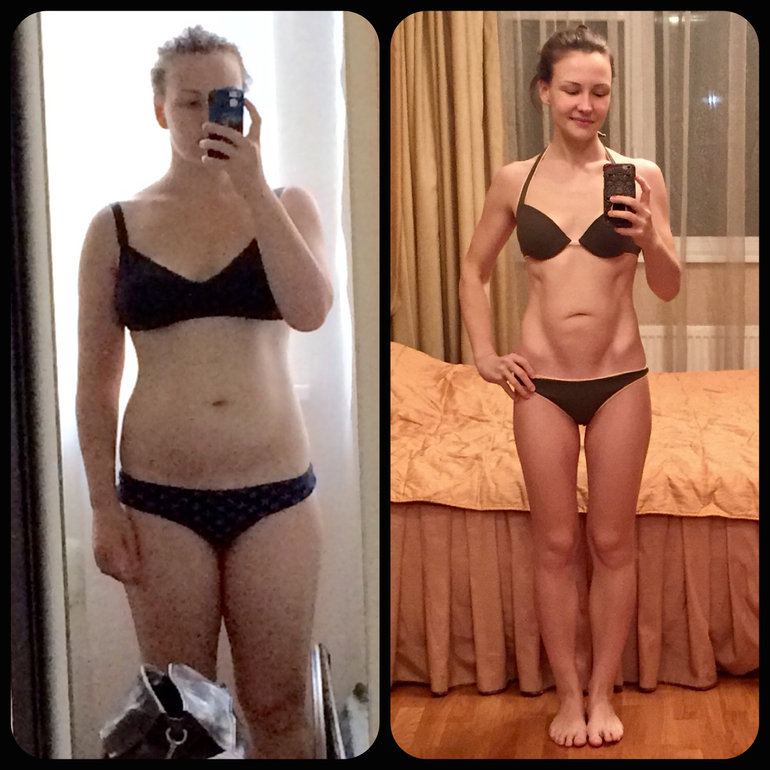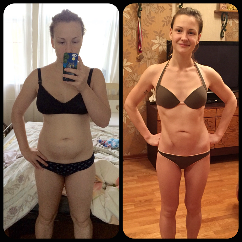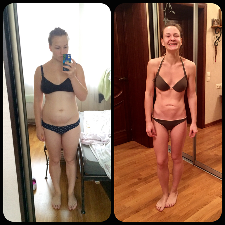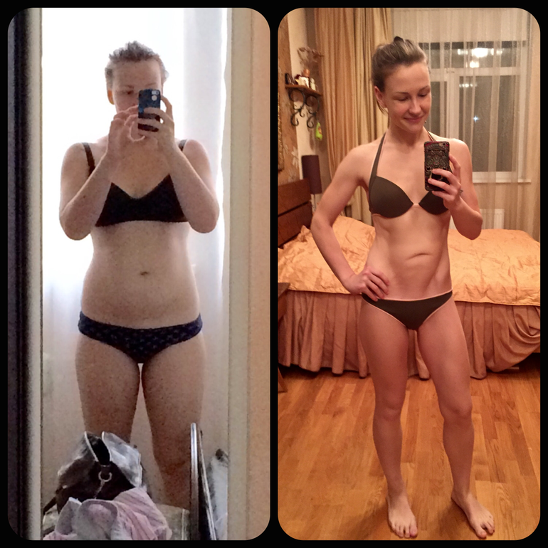Не могу не поделиться наглядным результатом. На этих снимках "до" вес 70, старт 1 сентября 2016 -- 72. "После" -- вчера, 53.