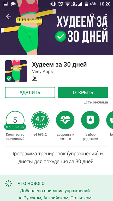 Диеты эти я не сильно соблюдаю) у меня своя, проверенная. А вот упражнения из обоих приложениний. Каждый день. За одну тренировку.