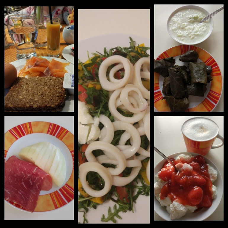 З-мюсли с молоком + яйцо + кофе, о - гречка с овощным рагу + запеченая грудка, п - кефир с семенами льна, у - салат из капусты/редиса/огурца.