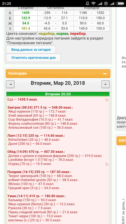 Всем привет) отчет за 19.03 вчера все было так: утро : яичница с помидором, кофе с молоком , день: индейка гречка соус, кукуруза, вечер: мидии в рассоле, банан, творог , сироп 30 гр. Помело итог 1500ккал.А вот сегодня 20.03 напал жорик на меня, Но в профицит все равно не вышла..максииум поддержки. Возможно связано с тем что бросила курить , ужасно тянет жрать..просто ужасно..надо чем то занять рот. В итоге наела 2072 ккал, утро яичница +кофе с молоком, второй завтрак творог, банан, сироп , обед: грудка гречка, соус, кукуруза, яблоко, кофе с молоком , вечер: творог банан, сироп 20 гр. Мидии, нори чипсы, крабовые палочки , морская капуста. Помело, 2 яблока...вот такие дела..завтра постараюсь не оюжираться. И не есть палочки и мидии , А то отекаю от них на утро, как собака.