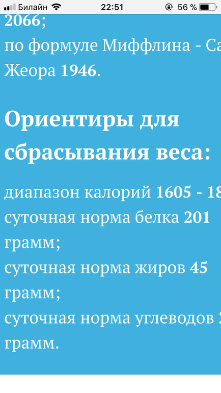 Мне конечно формула насчитала много.. но формула усредненная, не может она в точности учесть уровень вашей ежедневной активности. Поэтому я скатилась на минимум - 1600ккал. 2 недели и минус 3кг/2см в объемах. Думаю как дойду до аднкватного веса, буду увеличивать постепенно, плюс 50-100ккал.