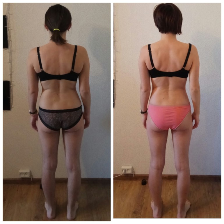 Извините, но по моему, на первом фото Вам достаточно было встать ровнее и чуть втянуть/напрячь живот - и картинка была бы гораздо лучше )Ни в коей мере не умаляю Ваши достижения, просто если Вы делаете если упражнения для осанки, то не можете не знать,как она влияет на общее впечатление