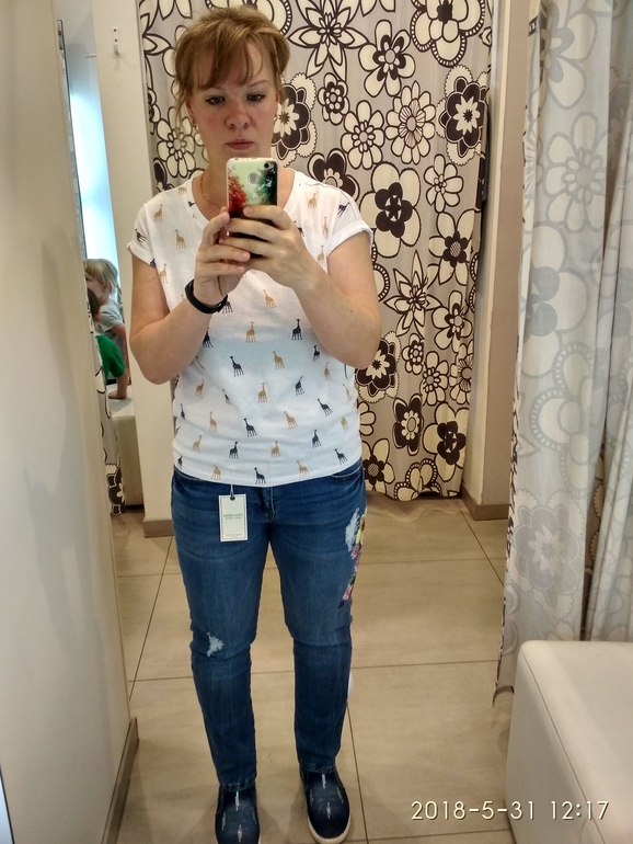 Оля, ты мне глаза открыла. Что, к джинсам нужно верх подбирать?? Я всю жизнь ношу любые джинсы с любой футболкой и даже не задумывалась об этом... Вот кстати с жирафиками хорошо.