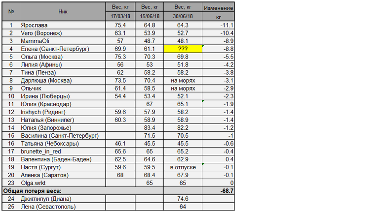 Ярослава по-прежнему лидирует, но ее уверено догоняет Вероника, девочки, огромный респект! Кстати, заметно, что все немного притормозили, лето, все дела, но это и неплохо, мы же хотим стабильности в конце концов!