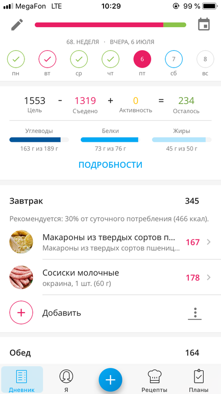 Добрый вечер! Если позволите, прокомментирую. У вас всего три приема пищи за целый день, за которые вы скорее всего ни грамма лишнего жира не сбросите, поскольку у вас не нормализован баланс кбжу (в меню вы основном углеводы и жиры. И явно перебор калорий). Я бы советовала меню по возможности пересмотреть. Если лезу не своё дело-напишите. А то мне прям мир хочется спасти, а не только себя. Вот и лезу со своими советами