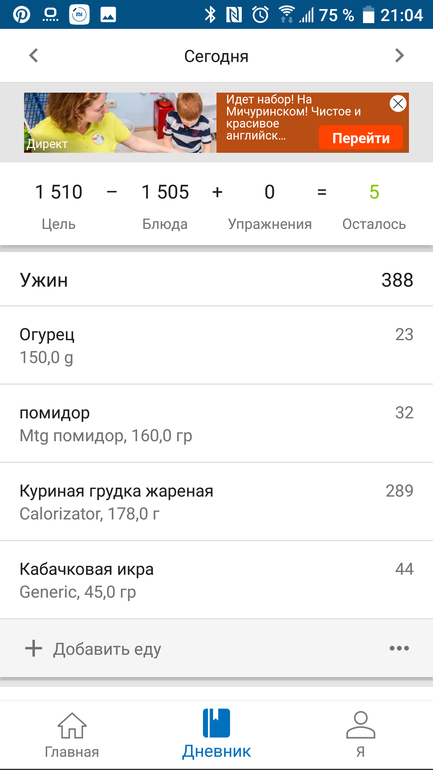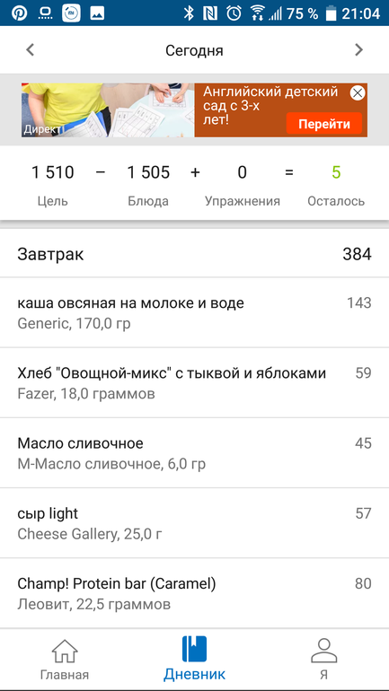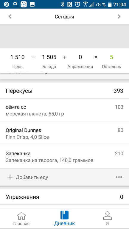 Итого 1505, в норму вписалась, Но прям какой-то жор сегодня.