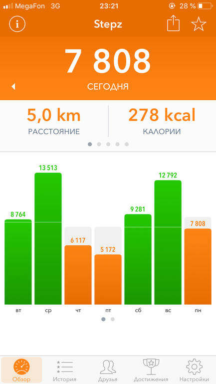 Из спорта сегодня у меня длительная прогулка с коляской: 7000 шагов только прогулка, 300 ккал сожгла, если верить приложению.