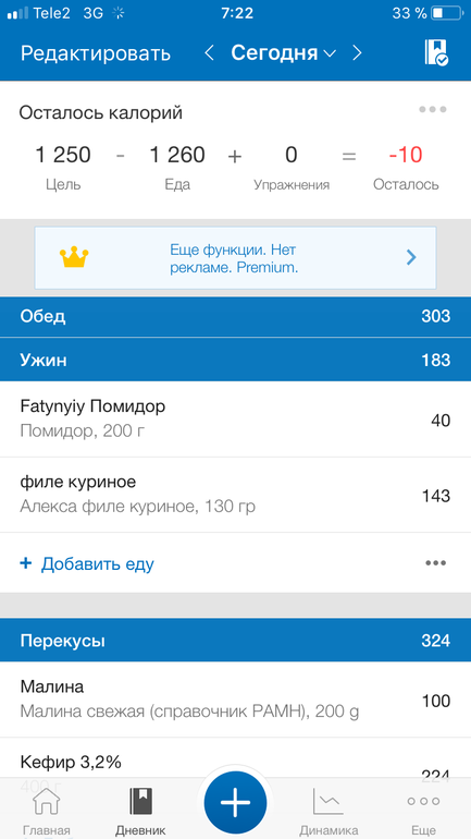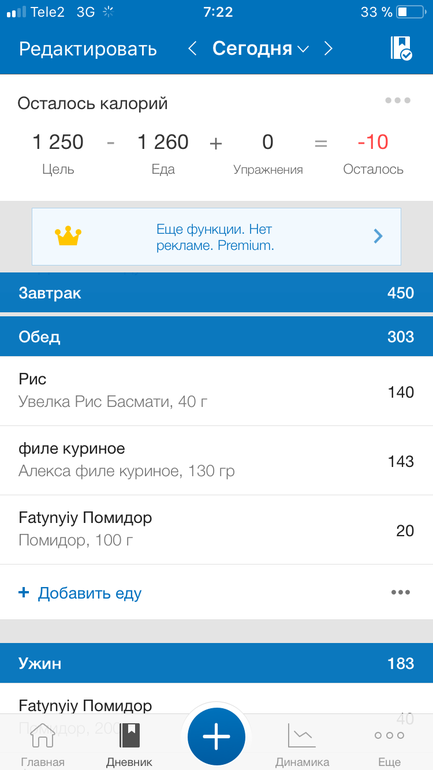 Ну если вы на меня намекаете, то специально внесла в программу своё меню (2 перекуса объединила в один, чтобы не вбивать оба). 1260 калорий. Это на строгом пп! С приемами пищи по 300 грамм. Плюс заправка салата оливковым маслом-вот и 1300