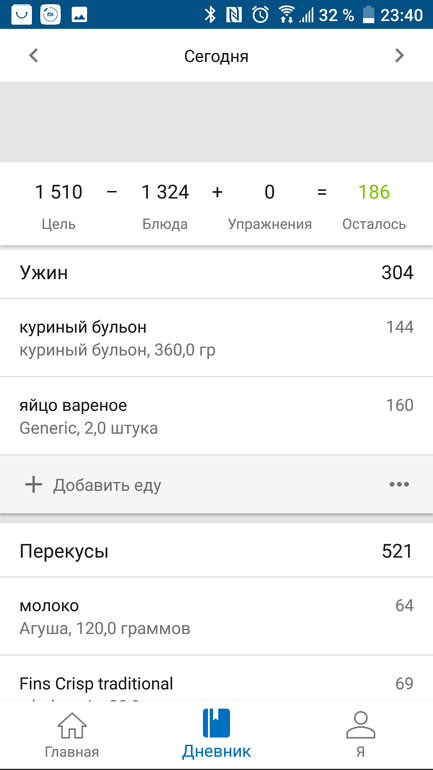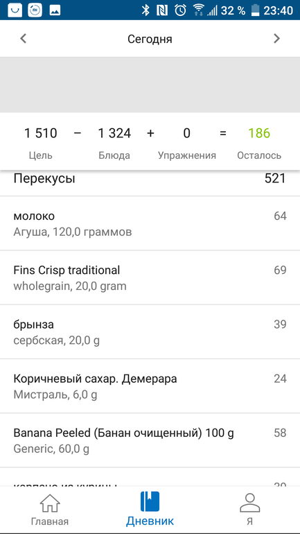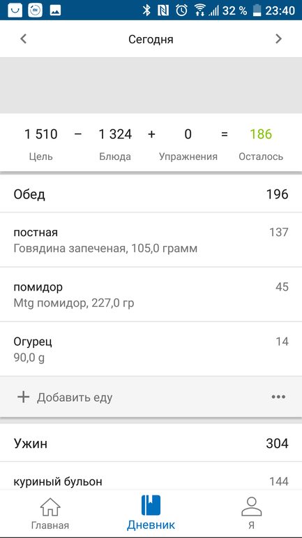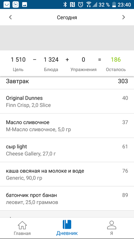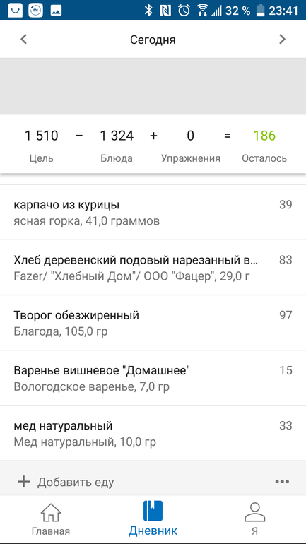 Итого: 1324. Граница 1500, так что по калориям сегодня хорошо.