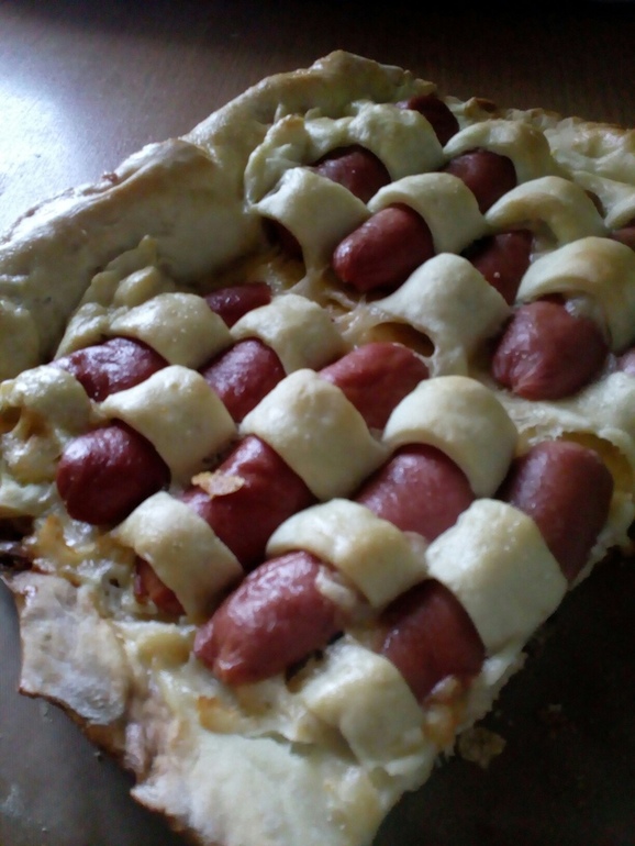 Я даже погуляла с малышом уныло и недолго... Зато злобно расправилась с запасом сосисок в доме! Благо, не съела! Запилила из них неведомый пирог, пусть муж несёт на работу и делает там с ними всё, что угодно, главное - подальше с глаз долой))