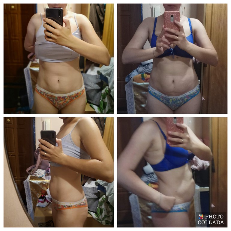 Руки на 2см стали меньше. У меня кожа, как у старушки, висит(( тут уже без зала не обойтись. И ещё, я подозреваю, что это такова конституция тела. Пузо не втягивала)