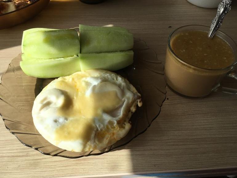 Мой 4 день. Сегодня вроде получилось более верно выстроить меню. На ужин хотелось изначально пару вареных яиц, свежий огурец и чай, но по пути домой я попала под ливень с градом, ладно зонт был. Но 40 минут тряслась в маршрутке в абсолютно мокрых кросах и мокрых по-колено джинсах. Тарелка супа вернула меня к жизни. И еще, мне кажется, я намудрила с рисом - слишком много калорий.