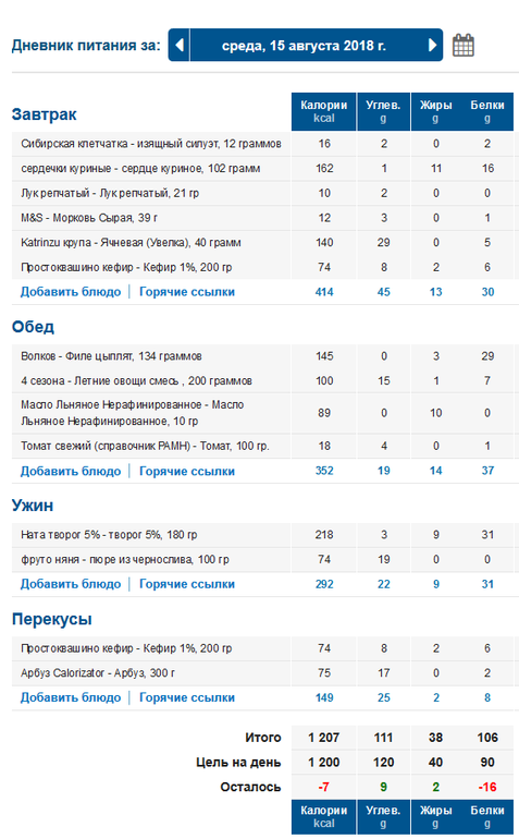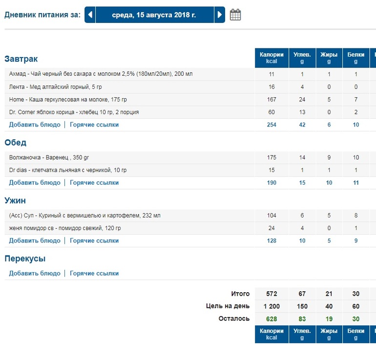 Как ниже Лена написала, угли убираем, их очень много, 140-160 достаточно. Жиров больше. Самый калорийный должен быть завтрак на 500 калорий и по убыващей, обычно на ужин оставляем 200-300 калорий.