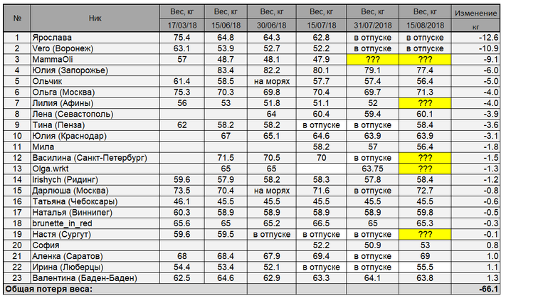Так, я вернула немного вес- 63 кг. Так что на момент 31.08. я сбросила 0.5 кг))) Надо продолжить худеть, а то я как наелась шоколадки, не смогла ограничиться квадратиком ((((