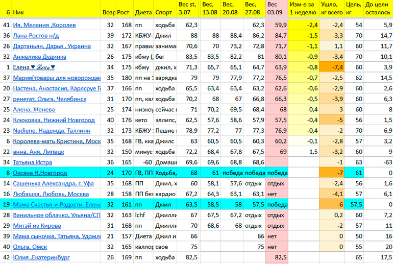 на гв вроде четверо остались, Оксана на гв хорошо похудела, уже ушла. на пп садишься и худеешь, хотя многие мамы тут на подсчете калорий, держат планку 1600 -1700 калорий в день.