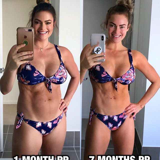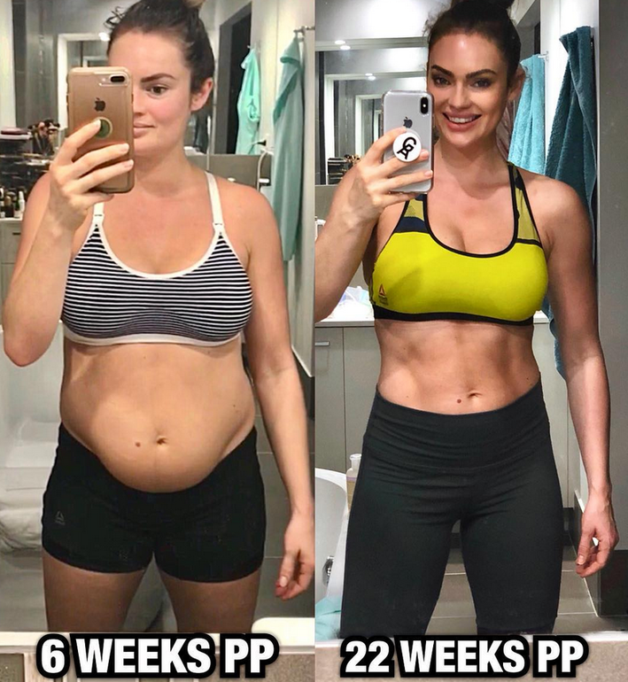 Фитнес-блоггер не стесняется показывать себя со всех ракурсов во время периода тренировок. Вот тут она сравнивает свое тело через 6 недель и 4 месяца после родов. Какая проделана работа!