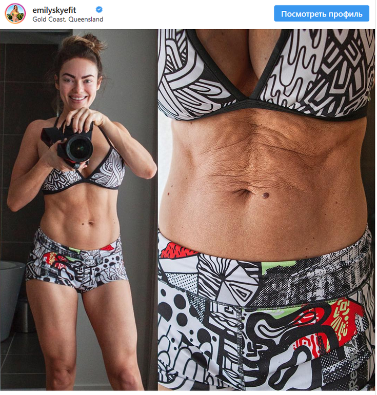 Несмотря на возвращение прежних объемов, упругость тела не вернулась за полгода тренировок, о чем Эмили тоже честно рассказала в своем блоге.