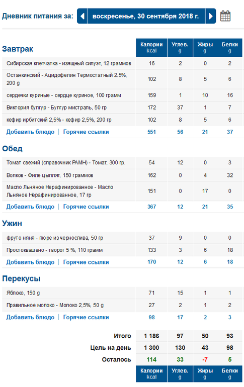 не рассчитала меню, из-за завтрака ушла в минус, вечером уже заметила, а уже не голодная была.