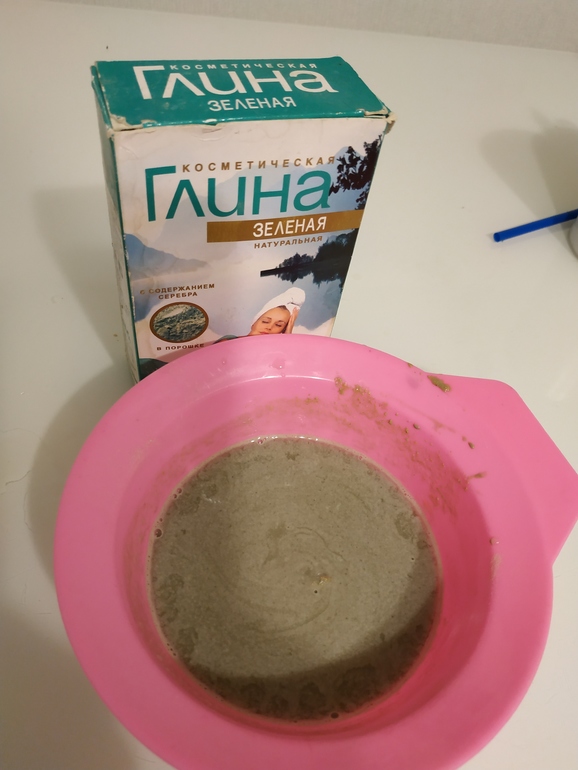 Фотоотчет прилагаю - маска из зелёной глины и кефира