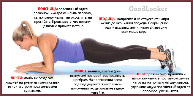- Ягодицы: также должны быть напряжены и находиться на одном уровне со спиной. Не прогибайте таз и не поднимайте ягодицы вверх.