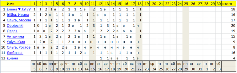 Количество подходов будем увеличивать каждые 4 дня- 1 день.