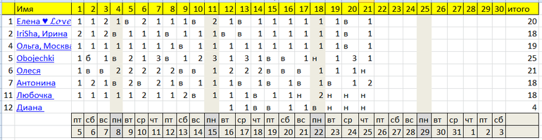 Количество подходов будем увеличивать каждые 4 дня- 1 день.