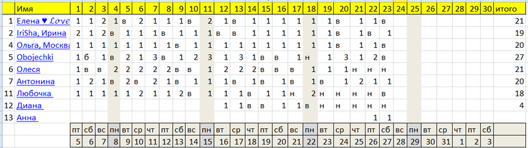 Количество подходов будем увеличивать каждые 4 дня- 1 день.