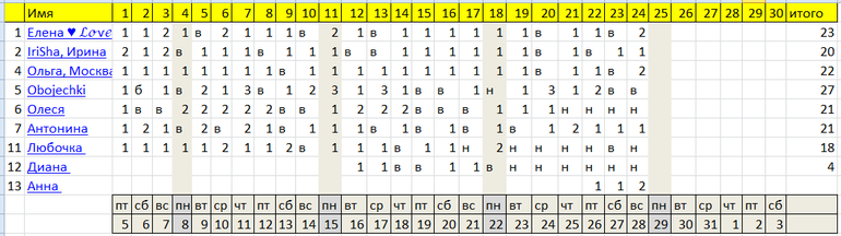 Количество подходов будем увеличивать каждые 4 дня- 1 день.