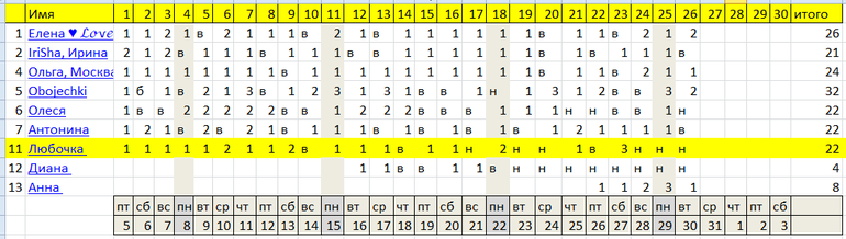 Количество подходов будем увеличивать каждые 4 дня- 1 день.