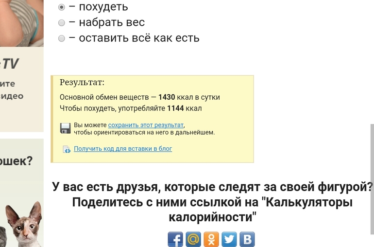 Теперь бжу. На diets посчитала, пишет что для похудения необходимо 1100 калорий. Маловато,не?