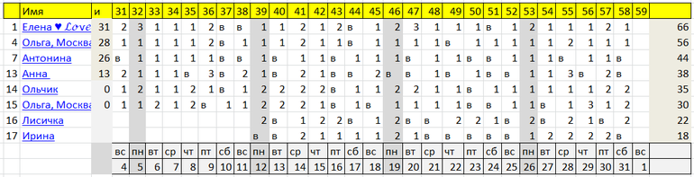 Спортивный марафон - 52-58 день с 25 ноября по 1 декабря