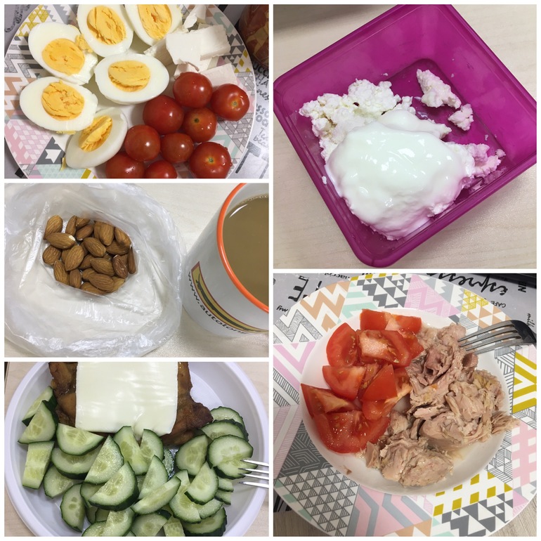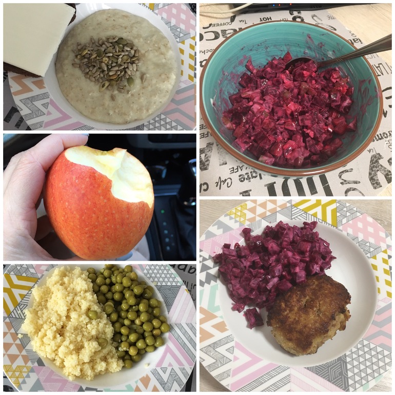 Сегодня был смешанный день, рацион как при обычном питании, только без нарушений - никакого сладкого, мучного и прочей нечести)