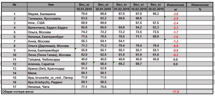 Марафон «Похудец-2019» (отчеты за 08.02.2019 - 28.02.2019)