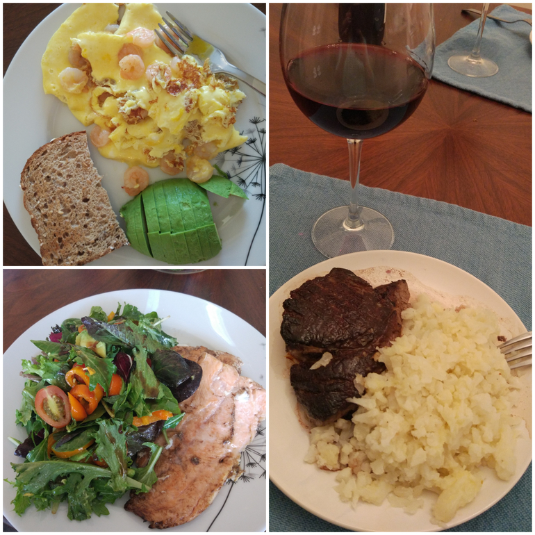 Завтрак :тосты с хамоном, пара яиц, печеное яблоко.