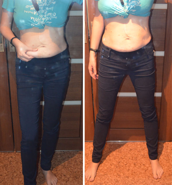 Результат супер!! Джинсы не удачные..перетягивают без них вообще не видно живота.