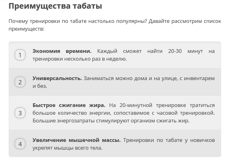 Так, учёные из Обернского университета выяснили, что после 4-минутной табаты из приседаний с выпрыгиванием скорость метаболизма удваивается как минимум на 30 минут.