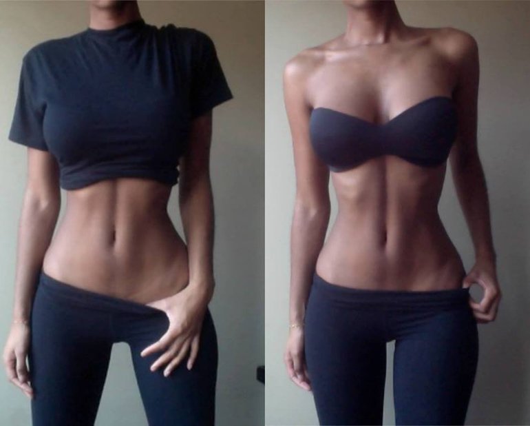 Екатерина: Чтобы добиться тонкой талии, совсем не нужно выполнять по 1000 упражнений на пресс, а уж тем более пытаться накачать косые мышцы живота. Это ошибка многих девушек в спортзале - взять диск весом пять килограммов, боком встать в тренажёр «наклонная гиперэкстензия» и выполнять наклоны в бок, надеясь, что талия станет уже. Совсем наоборот, ваши косые мышцы живота станут объёмнее, что в свою очередь визуально сделает талию шире.