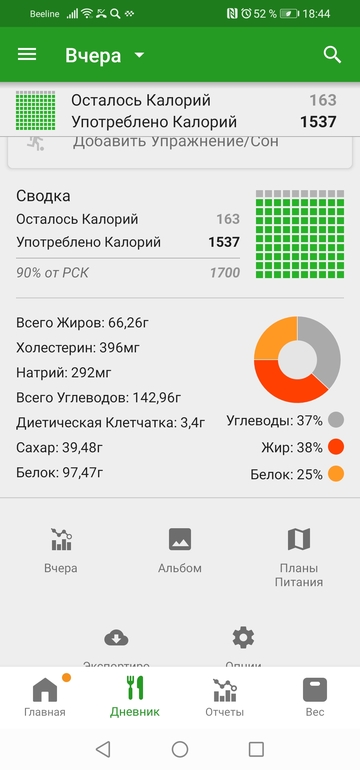 Судя по всему я даже мышечную массу ПОКА не теряю. Я довольна. Еще раз убеждаюсь верности правила для поддержания нужного веса: физическая активность + подсчет калорий. Только это и работает.