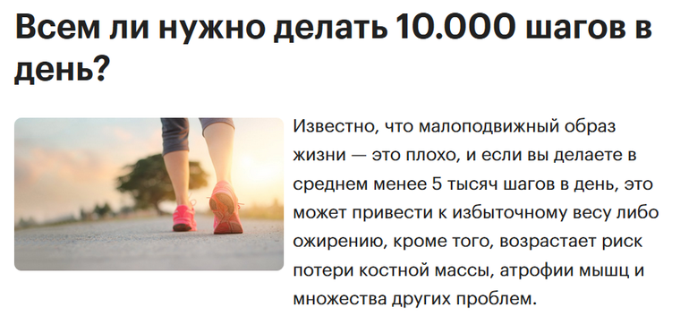 Вот и получается, что 10 000 - это действительно условное, ни о чем не говорящее число. С таким же успехом (или неуспехом) можно было бы отсчитывать 12 000, 15 000 шагов, потому что результат по большому счету от этого не меняется.