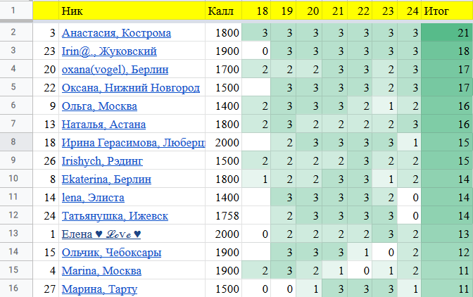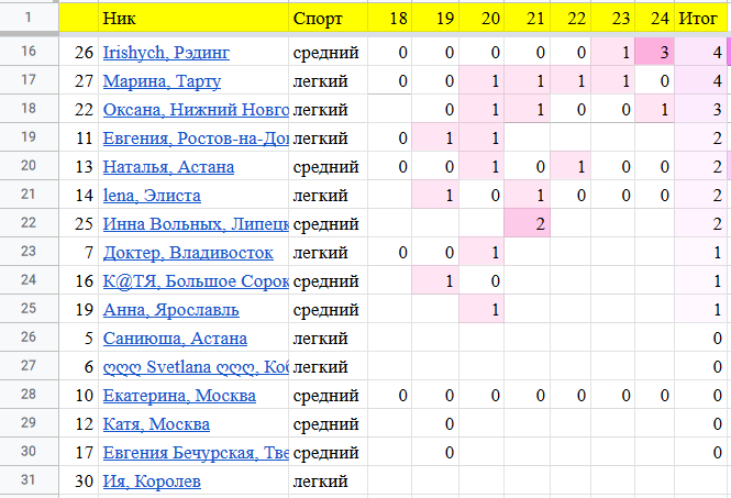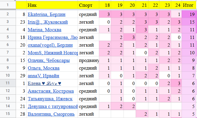 Подведем итоги прошлой недели. Начну с тех, кто не отчитывается совсем. Не заполняет отчеты в таблицах (если еще не поняли, как, то внизу буде инструкция, как это сделать).