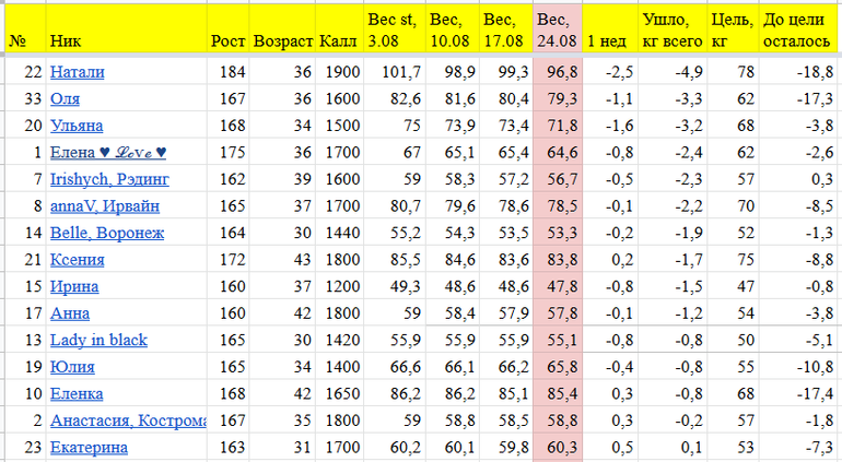 Марафон "Стройнеем вместе" с 25.08 по 31.08 - 4 неделя