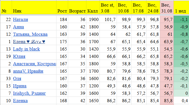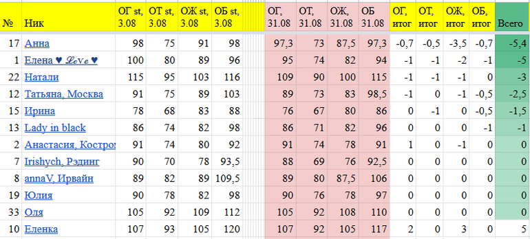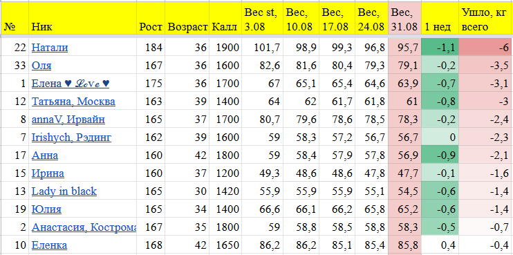 Марафон "Стройнеем вместе" с 31.08 по 7.09 - 5 неделя