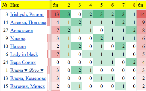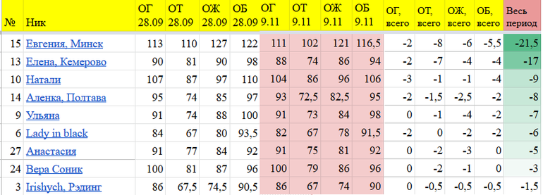ТАБЛИЦАЛИДЕРЫ ПРОШЛОЙ НЕДЕЛИ