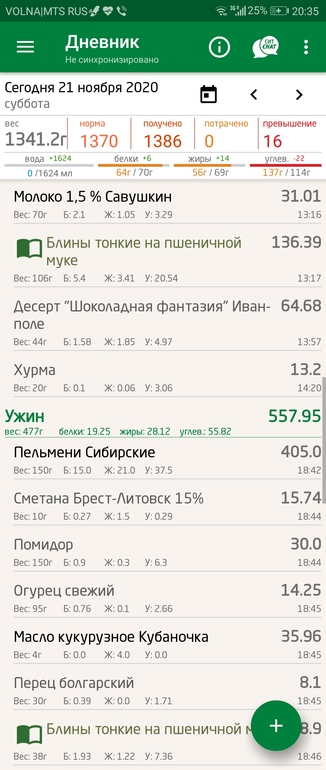 Вот, например, сегодня пекла феодоне (рикотник) и положила к нему варёной сгущёнки. Села есть, вбила в ФС и увидела перебор. Убрала сгущёнку. И не умерла. 😊