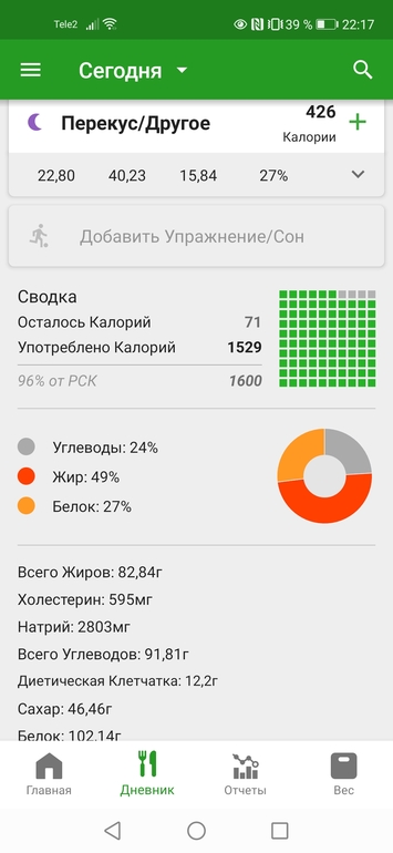 1150 калорий, и я не была весь день голодная!!!! Обалдеть! Даже если и промахнулась на среднестатистические 20%, то все равно это всего лишь около 1400 ккал!