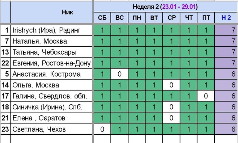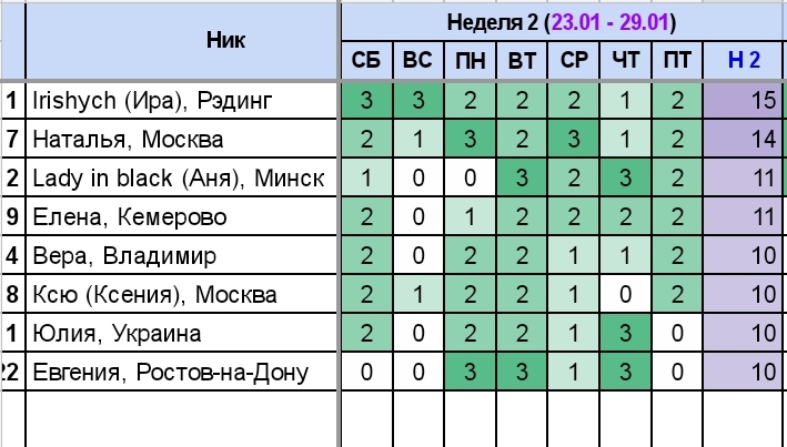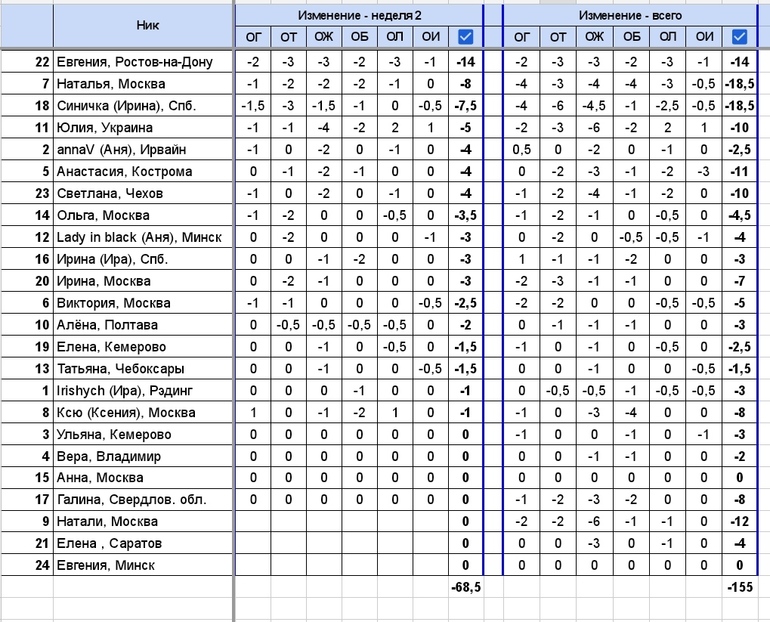 Результаты 2 недели (кто не внес - извините, как говорится):